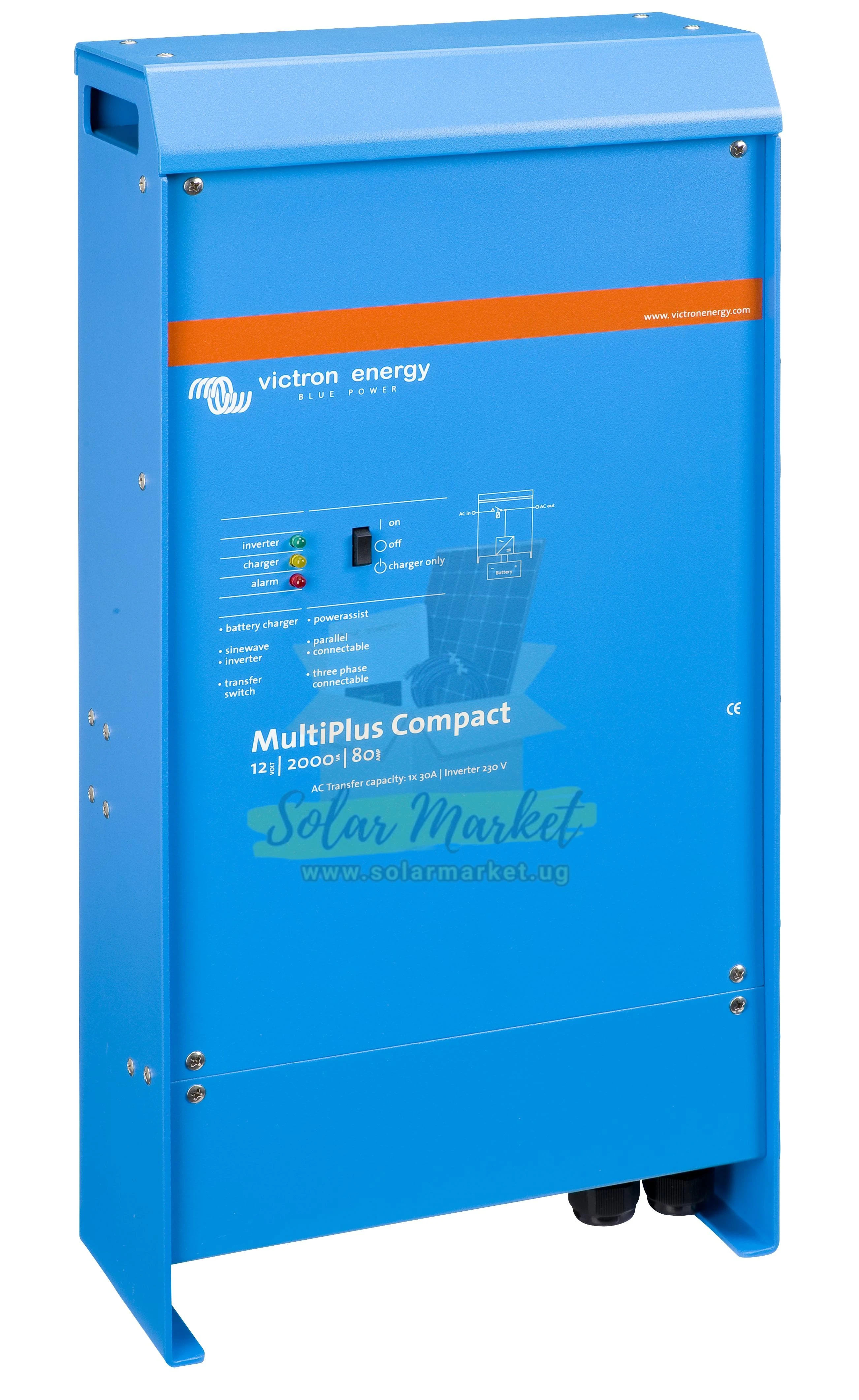 The Victron Multiplus 12/1200/50 Inverter Charger delivers 1.2kVA continuous output power at 12V, supporting LV (Low Voltage) single phase installations. Engineered for robust performance in demanding environments, it integrates PowerAssist and PowerControl technologies to optimise energy use and protect against overloads. The unit features a built-in transfer switch (16A), programmable relay, and VE.Bus communication for parallel and three phase system integration. With an operating temperature range of -40°C to +65°C and IP20 protection, it is suitable for both residential and mobile applications in Uganda. The device supports remote monitoring and system integration, and includes a battery temperature sensor for enhanced charging accuracy.